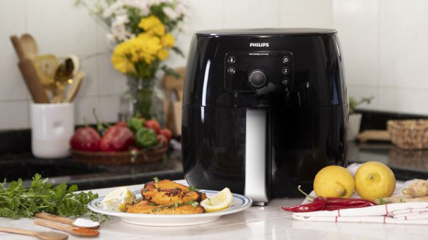 4- ضعي قطع الدجاج على سلة Airfryer XXL من فيليبس واطهيها لـ12 دقيقة.