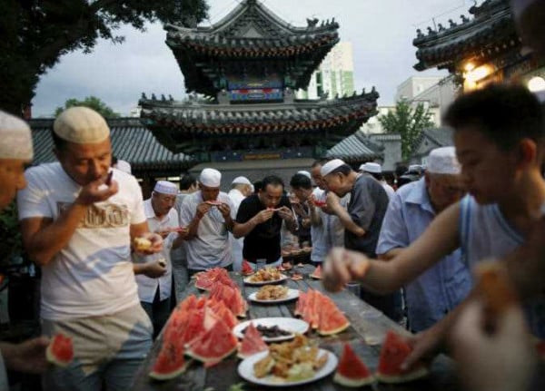 يحرص الصائمون في الصين على الإفطار في البداية على التمر والشاي والسكر فقط، قبل التوجه إلى المساجد القريبة لأداء صلاة المغرب، ثم يتناولوا بعد ذلك وجبة الإفطار مع أفراد العائلة، وهي عادة تشبه عادة الشعب المغربي في الإفطار.
