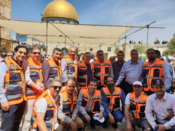 وجدير بالذكر زيارة نقيب الأطباء الدكتور شوقي صبحة بمرافقة وفد يضم كل من الدكتور سفيان بسيط نائب النقيب،الدكتور وائل ابو سنينة رئيس اللجنه الفرعيه في الخليل والدكتور عبد السلام أبو لبدة رئيس اللجنة العلمية والأخوة في اللجنة الفرعية في القدس بتفقد المراكز والعيادات الطبية والتي انتشرت في باحات المسجد الأقصى المبارك ، لتقدم خدمات طبية للمصلين الوافدين للمسجد الأقصى المبارك من أنحاء الوطن كافة وقد ثمن الدكتور شوقي صبحة نقيب الأطباء استعداد العيادات وتجهيزاتها بكل ما تحتاج للتعامل مع الحالات المرضية الطارئة كافة مثل الأوكسجين، وأجهزة الإنعاش، والأمصال بأنواعها، والأدوية اللازمة للإنعاش، وقد قام الدكتور شوقي بمشاركة الأطباء في تقديم الخدمة الطبية للمصابين وخلال الجولة شرح الدكتور سامر الاعور للوفد عن جمعية نوران والخدمات التي تقدمها وعن كيفية تطور العمل في المسجد الاقصى وخبرات الجمعية المتراكمة خلال السنوات الماضية وكذلك قدم الدكتور لؤي الكسواني شرحا مفصلا عن عمل جمعية برج اللقلق الإسعافية خلال شهر رمضان وعن أعداد المتطوعين العاملين في الجمعية وأهمية الجهود التي تقوم بها الجمعية وكذلك زار الدكتور شوقي صبحة الهلال الأحمر وتطلع على الدور الريادي الذي تقوم بة جمعية الهلال من الدور الإسعافي وكذلك نقل المرضى من المسجد الأقصى الى مستشفى المقاصد بشكل تطوعي و مجاني لضيوف المسجد الاقصى وكذلك زار وفد النقابة جمعية المسعفين العرب وقدم لهم الدكتور حازم الرويضي والدكتور أحمد قنام شرحا عن الدور الذي تقوم بة الجمعية واكدوا على مدى تعاون والتنسيق بين جميع المؤسسات الطبية الإسعافية في القدس الشريف وبين نقابة الأطباء للوصول الى أفضل مستوى من الخدمة لزوار المسجد الاقصى ومن ثم اجتمع الدكتور صبحة بأعضاء اللجنة الفرعية - فرع القدس الشريف.