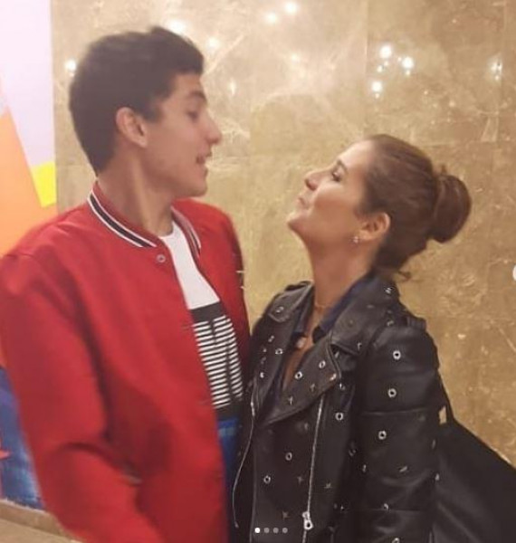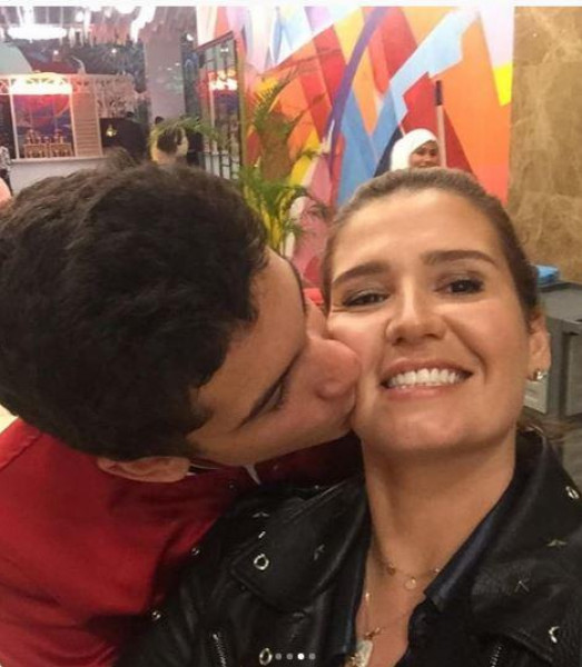 وخطفت هنا الانظار اليها من خلال صورة تجمعها بإبنها وهو يقبلها وعلقت عليها قائلة : "بحبك".