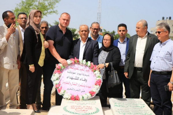وفد من "الشعبية" يضع أكاليل زهور على أضرحة الشهداء ويزور منزل الراحل مهنا