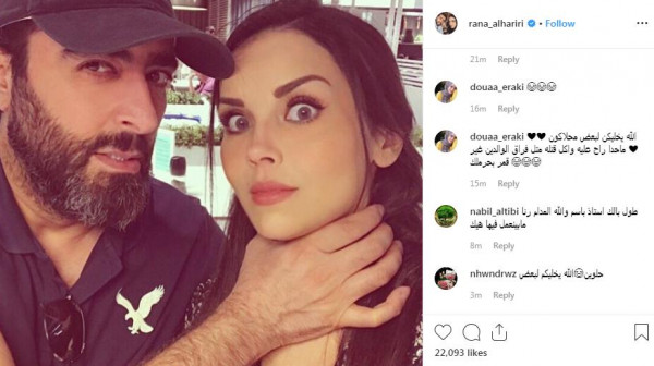 نشر الفنان السوري باسم ياخور صورة طريفة له جمعته بزوجته رنا الحريري وذلك عبر حسابها على انستغرام.