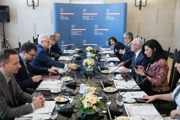 التقى وزير الخارجية والمغتربين د. رياض المالكي مع نظيرة البولندي ياسيك تشابوتوفيتش في مقر وزارة الخارجية البولندية في العاصمة وارسو، وذلك خلال الزيارة التي قام بها اليوم الاثنين تلبية لدعوة وزير الخارجية البولندي.