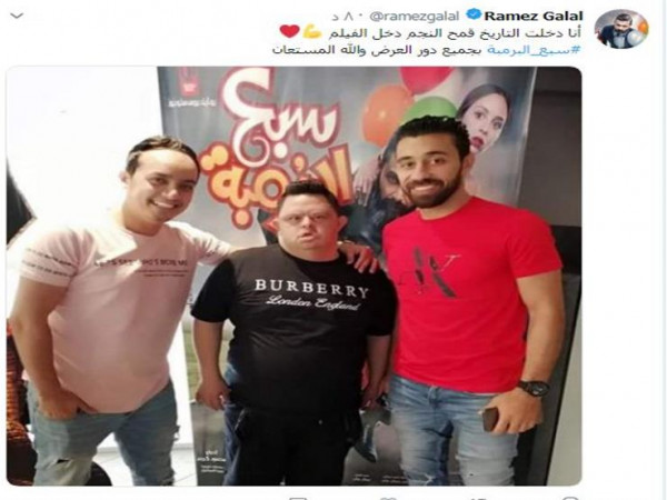 نشر الفنان رامز جلال، عبر حسابه الشخصي بموقع "تويتر" صورة لمشجع الأهلي الشهير "أمح" مع بوستر فيلم "سبع البرمبة".