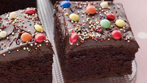 7- برّدي البراونيز وزيّنيها بباقي حبيبات الشوكولاتة الملوّنة وقدّميها.