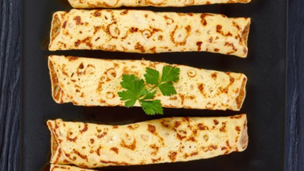 4- سخّني مقلاة غير لاصقة على حرارة هادئة. أسكبي حوالي مغرفة من عجينة الكريب وافردي المزيج جيداً في قعر المقلاة. أطهي الكريب لدقيقة من كل جهة حتى تنضج. كرّري العملية حتى انتهاء كمية العجين.