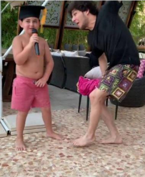 وبدا آدم فيه وهو يؤدي أغنية أجنبية فيما يقوم خالد بمرافقته مع الرقص بطريقة حيوية وعفوية.