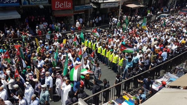نظّم مئات الأردنيين اليوم الجمعة، مسيرة في العاصمة عمان، احتجاجاً على خطة السلام الأمريكية المعروفة إعلامياً (صفقة القرن).