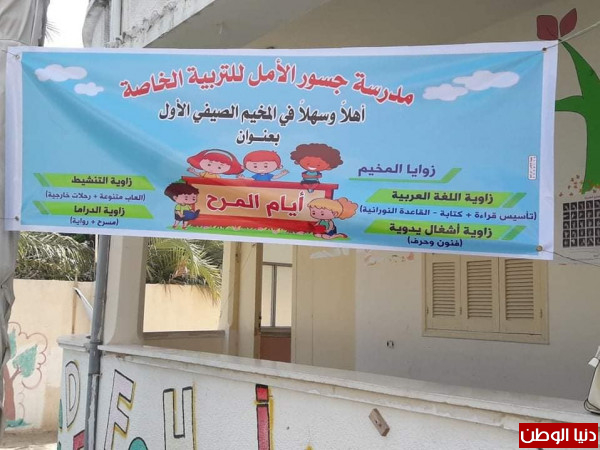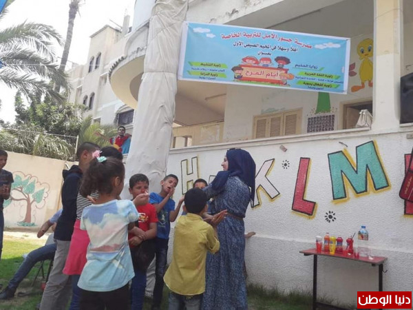 أطلقت مدرسة جسور الأمل للتربية الخاصة وبالتعاون مع جمعية نوى للثقافة والفنون، في دير البلح وسط قطاع غزة، اليوم الثلاثاء، المخيم الترفيهي التعلمي الأول لذوي الاحتياجات الخاصة من أبناء المدرسة والذي حمل عنوان "أيام المرح".