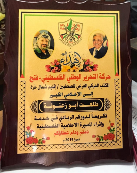 "المكتب الحركي للصحفيين" شمال غزة يكرّم الإعلامي طلعت أبو زعنونة