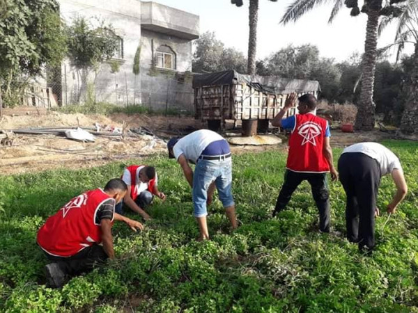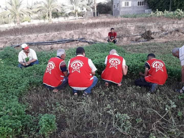 نظمت الجبهة الديمقراطية لتحرير فلسطين، يوم عمل تطوعي لدعم المزارعين شرق مخيم البريج بالمحافظة الوسطي.