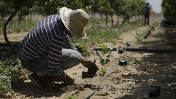 العمل الزراعي في قطاع غزة يزرع 50 دونم بأشتال العنب اللابذري (المحسنة)
