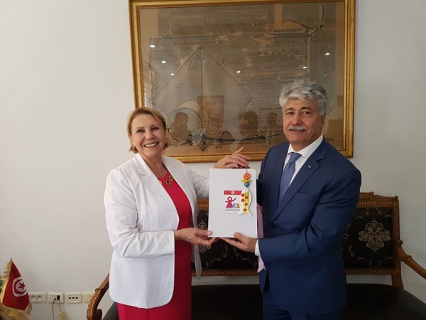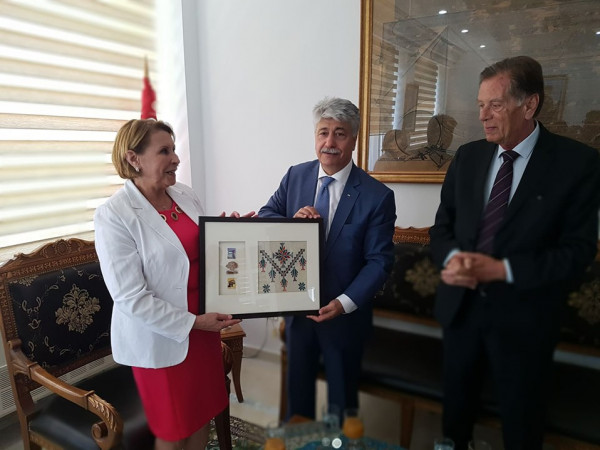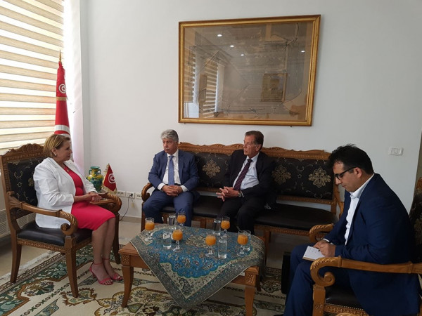 في اطار زيارة العمل الرسمية التي يقوم بها وزير التنمية الاجتماعية أحمد مجدلاني للجمهورية التونسية، التقى اليوم ، وبحضور السفير الفلسطيني بتونس هايل الفاهوم ، والوكيل المساعد لشؤون المديريات الشمالية لوزارة التنمية أنور حمام ، مع وزيرة المرأة والأسرة والطفولة وكبار السّن نزيهة العبيدي، في مكتبها بالوزارة بالعاصمة تونس.