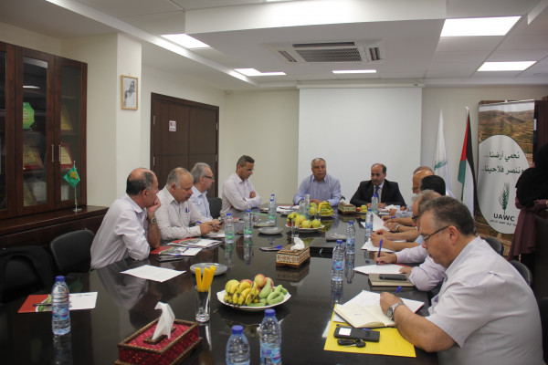 التقى وزير الزراعة الاستاذ رياض عطاري،اليوم الخميس، ممثلي ائتلاف المؤسسات الاهلية الزراعية في مكتب اتحاد لجان العمل الزراعي في مدينة رام الله،وذلك بهدف بحث سبل تعزيز التعاون والشراكة بين الجانبين بما يسهم في حماية الارض الفلسطينية في مواجهة مخططات التهويد والاستيطان، ودعم صمود المزارعين الفلسطينيين.