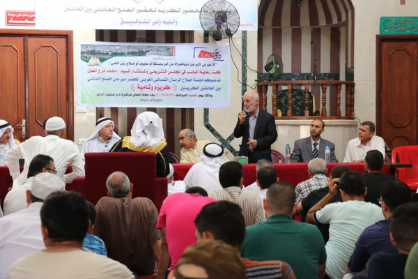 عقد النائب عن كتلة التغيير والإصلاح في محافظة غزة المستشار أ. محمد فرج الغول صلح عشائري بين عائلة كريزم وشامية بمشاركة لجنة اصلاح الرمال الشماليوبحضور لفيف من المخاتير ورجال الإصلاح وبحضور عدد العائلتين.
