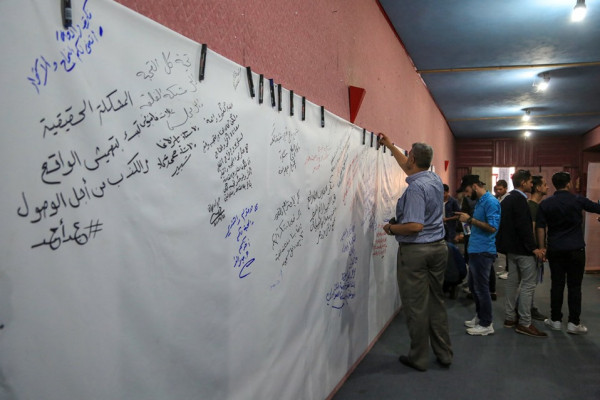ومن جهتهم قال الطلبة المشاركين في كلمتهم التى قدمها الطالب/عمر الجبور والطالبة /روان شقورة " بدأنا بفريق استثنائي استطاع ان يبني هويته وان يضع أهدافه وان يرسم طريقه بنفسه، و لم نكن في دور تلقيني كالمعتاد ...انطلقنا كباحثين نكتب ...نبحث...نستقصي ...ثم نتأمل بمنهجية نقدية لم نكن وحدنا هذه المرة بل كان فريقنا من الطلبة والباحثين في مرحلة من الانخراط الفعلي مع الاخر ومع المجتمع بكل مكوناته ...عام من التجربة ونحن نستكشف ما الذي يمكننا أن نراه ونحكيه في خان يونس .