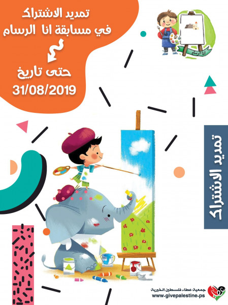 أطلقت جمعية عطاء فلسطين الخيرية في شهر ابريل مسابقة أنا الرسام للأطفال التي تستهدف الاطفال المبدعين في مجال الرسم من عمر 10 حتى 14 عام .