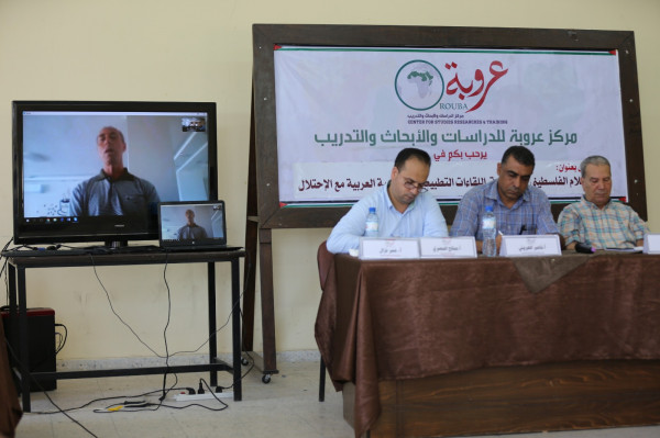 نظم مركز عروبة للدراسات والابحاث والتدريب اليوم في مقر المركز ندوة بعنوان دور الاعلام الفلسطيني في مواجهة اللقاءات التطبيعية العربية مع الاحتلال.