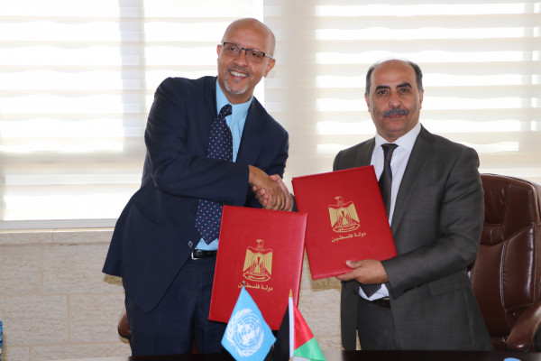 وقع وزير الزراعة الاستاذ رياض عطاري وممثل برنامج الأمم المتحدة الإنمائي (UNDP)، السيد "روبرتو فالنت"، اليوم الثلاثاء، مذكرة تفاهم لتنفيذ عدد من المشاريع الزراعية في الاراضي الفلسطينية ولحشد التمويل والاستجابة لخطة الحكومة في تنفيذ المشاريع الاقتصادية للمساهمة في دعم وتعزيز صمود المزارع الفلسطيني على ارضه، ومن أجل تعزيز ربحية المزارعين وفتح الأسواق الزراعية وتعزيز منافسة المنتج الزراعي الفلسطيني،وذلك من خلال تنفيذ واقامة مشاريع تنموية خاصة في المناطق المهمشة والمصنفة "ج"،وفي القدس وقطاع غزة.