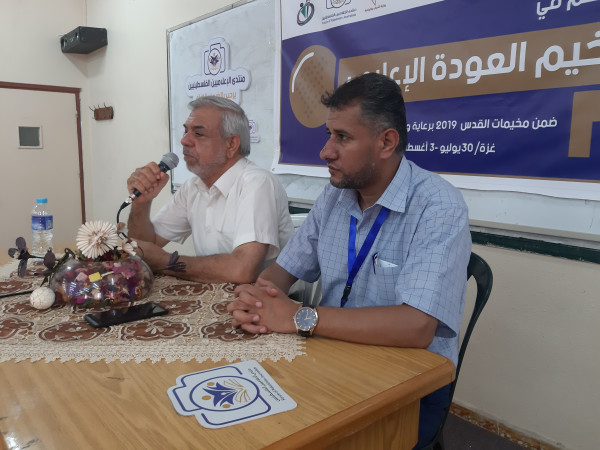 ورحب رئيس مجلس إدارة منتدى الإعلاميين الفلسطينيين الدكتور خضر الجمالي بالمشاركين في مخيم العودة الإعلامي، مشيراً إلى اهتمام المنتدى بتنظيم الأنشطة والفعاليات المختلفة التي من شأنها رفد خبرات وصقل مهارات الصحفيين في المجالات المهنية والحياتية، معرباً عن تمنياته للمشاركين بقضاء أوقات مفعمة