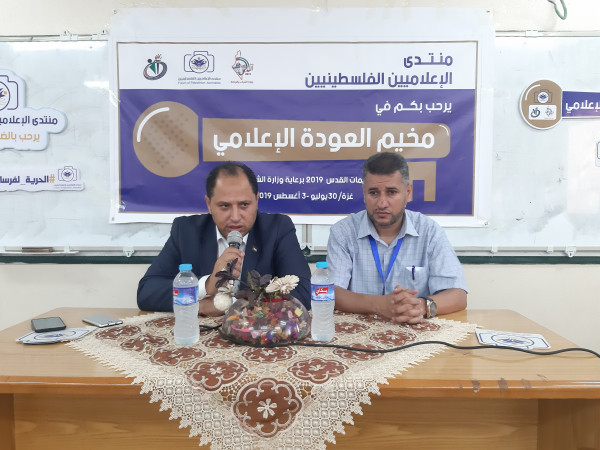 أطلق منتدى الإعلاميين الفلسطينيين، فعاليات مخيم العودة الإعلامي برعاية وزارة الشباب والرياضة، وذلك بمشاركة كوكبة من الصحفيين والصحفيات في مقر الجامعة الإسلامية بمدينة غزة، وذلك ضمن برامجه الرامية لتعزيز مهارات وخبرات الصحفيين.