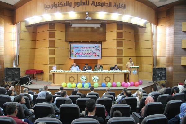 احتفت لجنة العاملين بالكلية الجامعية للعلوم والتكنولوجيا بخان يونس بالطلبة المتفوقين دراسياً من أبناء العاملين بالكلية وسط أجواء من السعادة والسرور، بحضور الوكيل المساعد لشؤون التعليم العالي الدكتور أيمن اليازوري، وعميد الكلية الدكتور أحمد عايش أبو شنب، ورئيس لجنة العاملين بالكلية الأستاذ عبد القادر العطل، ونواب العميد وأعضاء الهيئتين الأكاديمية والإدارية وأبناء العاملين المحتفى وذويهم.