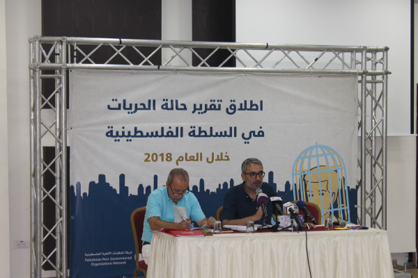 واظهر التقرير تراجع في منحى الحريات العامة عموما في فلسطين وجوهرها حالة حقوق الانسان بما فيها عدد القوانين منها ما يتعلق بالمحكمة الدستورية، او قانون الجرائم الاكترونية الذي يضيف قيودا جديدة على عمل مواقع الاعلام الاجتماعي، كما يشير لانتهاكات وصفها بالمركبة على التجمع السلمي او الاعتداء المباشر على المسيرات كما حدث في شباط 2018 حسب التقرير وبما يشمل عمل سلطة القضاء، وحق التعبير عن الرأي والحقوق المدنية الاخرى بما فيها حق تشكيل الجمعيات والنقابات .