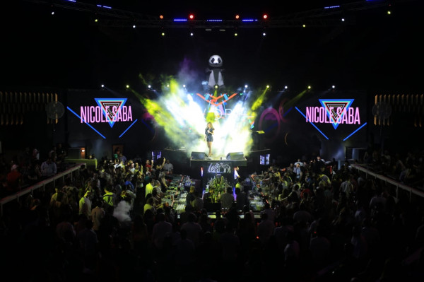 صعدت نيكول سابا على خشبة المسرح فى الثالثة من صباح اليوم الجمعة مرتدية فستانا أسود قصير، وقدمت خلال الحفل عددا كبيرا من أشهر أغنياتها المتميزة وأشعلت الحفل بوصلات الرقص المتتالية حتى قرب طلوع الشمس .