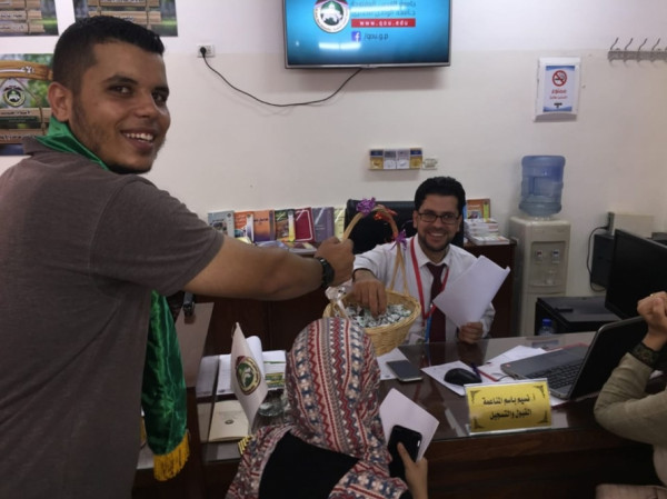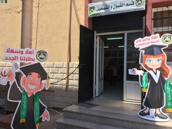 استقبل كوادر وقيادات الكتلة الإسلامية فى جامعة القدس المفتوحة الطلاب الجدد فى الجامعة ، وسط ترحيب كبير بهم وتزيين عام للجامعة ونشر لافتات الترحيب والتهنئة لطلاب الثانوية العامة بالنجاح والتفوق.