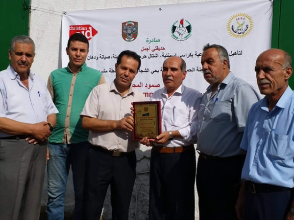 وفي نهاية الاحتفال كرمت لجنة الحماية المجتمعية (حي الشجاعية) كل من بلدية غزة والإغاثة الزراعية على جهودهم وتعاونهم مع اللجنة في إنجاح المبادرة المجتمعية، وذلك من خلال تسليمهم دروع مجسمة.