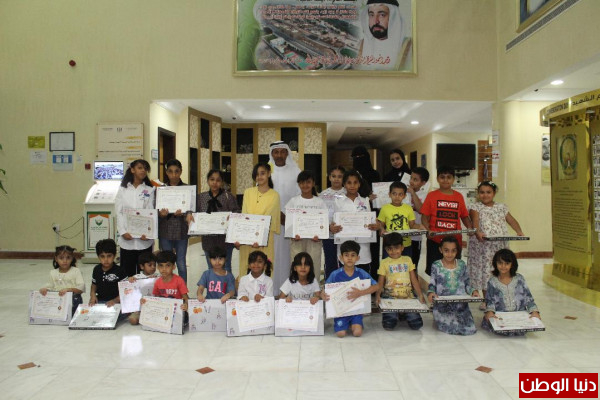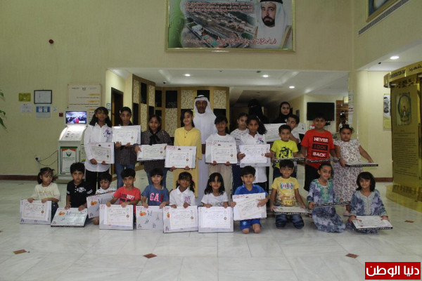 وبعد أن قضى الاطفال وقتا إبداعية في تنفيذ مهارات الورش باستخدامأوراق الاشجار وانتاج أشكال فنية متنوعة قام محمد راشد رشود رئيس مجلس أولياء أموردبا الحصن بتقديم شهادات مشاركة وجوائز تشجيعية لجميع المشاركين.
