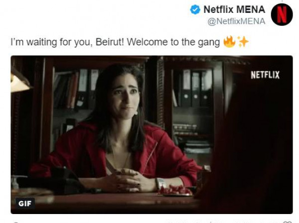 وكتب حساب نتفلكس تغريدة عبر "تويتر"، قال فيها: "نحن بانتظارك، بيروت أهلًا بك ضمن العصابة".