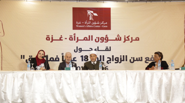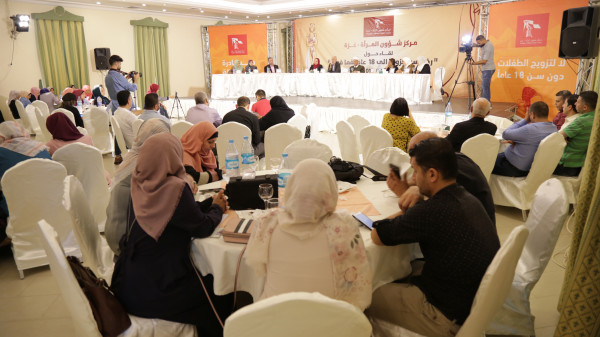 تحت شعار "لازلت طفلة"، نظم مركز شؤون المرأة في غزة لقاءً حوارياً حول "رفع سن الزواج إلى (18) عاماً فما فوق"، بحضور د.حسن الجوجو رئيس المجلس الأعلى للقضاء الشرعي، ولفيف من ممثلي/ات المؤسسات الحكومية والمجتمع المدني، والحقوقيين/ات والإعلاميين/ات، جاء ذلك ضمن أنشطة مبادرة المناصرة "لازلت طفلة" حول التزويج المبكر، في إطار مشروع "تعزيز احترام وحماية حقوق النساء في قطاع غزة" بتمويل من (Trocaire) .