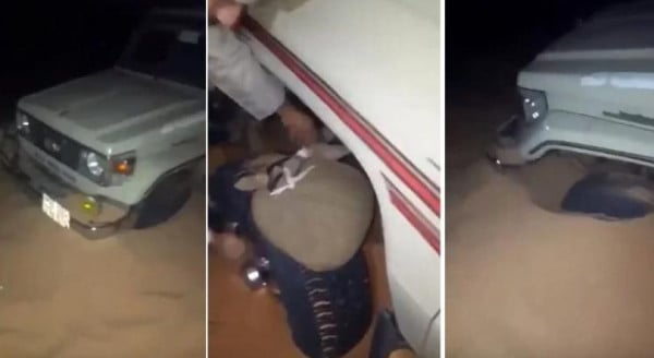 سعوديان يوثقان طريقة بسيطة لاستخراج السيارة عندما تعلق في الكثبان الرمليّة