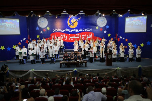 احتفلت الجامعة الإسلامية بغزة لليوم السادس على التوالي ضمن احتفالات تخريج الفوج الثامن والثلاثين من طلبة الجامعة الإسلامية، الذي أطلقت عليه اسم "أفواج التميز والإبداع"، بتخريج الدفعة الثامنة من طلبة كلية الطب وذلك في قاعة المؤتمرات الكبرى بمركز المؤتمرات، وأقيم حفل التخريج بحضور الدكتور محمد العكلوك- نائب رئيس مجلس الأمناء، وأعضاء من مجلس الأمناء، والأستاذ الدكتور ناصر إسماعيل فرحات- رئيس الجامعة، وأعضاء من مجلس الجامعة، والدكتور فضل نعيم- عميد كلية الطب، وأعضاء الهيئتين الأكاديمية والإدارية بكلية الطب، وممثلون عن الجامعات والكليات والمعاهد الفلسطينية، وجمع من الأطباء والعاملين في الحقل الصحي، والخريجون والخريجات، وذووهم.