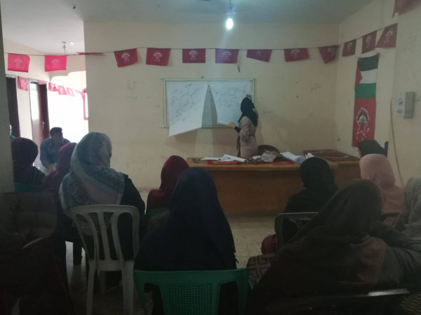 نفذ اتحاد لجان العمل النسائي الفلسطيني، الإطار النسائي للجبهة الديمقراطية لتحرير فلسطين ندوة توعوية للأهالي بعنوان العنف بالشراكة مع جمعية تنظيم الأسرة بمحافظة شمال غزة فرع جباليا بحضور 25 رفيق ورفيقة .