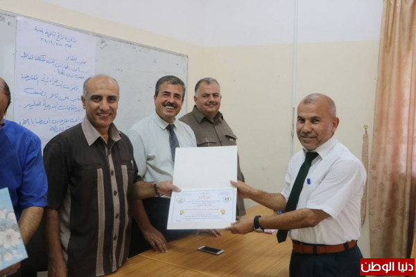 بدوره شكر د. ناصر اليافاوي معلمي مبحث التاريخ على ما قدموه خلال العام الماضي من عمل وعطاء كان له الدور البارز في رفع مستوى الطلبة في المبحث، واوضح بان هذا التكريم يأتي تقديراً لجهودهم وتشجيعاً لهم على مزيد من العمل والاجتهاد.
