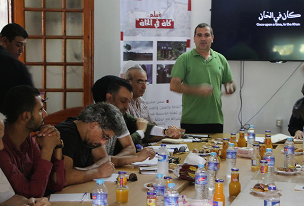وقدمت الباحثة بالمشروع عبير المدهون تقديما عن رؤية المشروع ومراحل انخراط الطلبة وصولا لفيلم "كان في الخان" كنتاج عملهم التراكمي عبر عام ونصف من البحث والاستقصاء والتجريب كفريق يسعى ، لاكتشاف ذواتهم والوعي بها، وإعادة إنتاج الواقع من منظورهم الخاص، دون إهمال وجهة نظر الآخر و ودعت للتركيز في رؤية أدوار الطلبة المغايرة ومساحات الحوار الذي تخللتها".