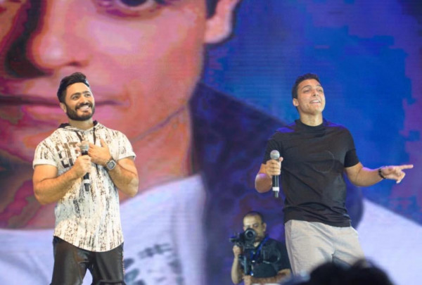 ونال خالد، إعجاب الجميع في حفل يعتبر الأضخم والأكبر في حفلات هذا العام، وكان بينه وبين الجمهور تفاعل ناتج عن خفة الدم التي كانت بينه وبين تامر، خلال الغناء معا.