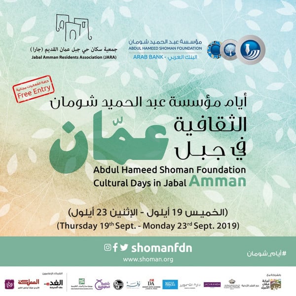وتعود "شومان"، لإقامة أيامها الثقافية في جبل عمان للسنة السادسة على التوالي؛ بباقة متنوعة من الأنشطة الثقافية والفنية، بالتعاون مع أمانة عمان الكبرى وجمعية سكان حي جبل عمان القديم (جارا).