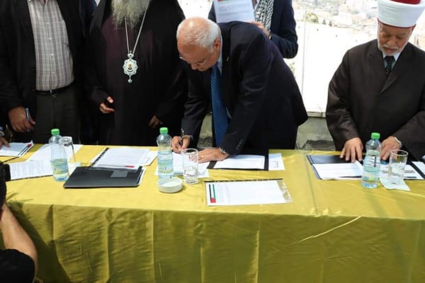 وبدوره أكد المطران عطالله حنا ، أن الدفاع عن القدس بكنائسها ومساجدها هو دفاع عن العداله الدولية، وان الوحدة ضرورة حتمية للانتصار، وأن المسيحيين في القدس وإن كانوا قليلي العدد ولكنهم كثيرين بايمانهم بارضهم فلسطين ، ومتمسكين بعاصمتهم وبفلسطينيتهم وهويتهم الوطنية، ويناضلون جنبا الى جنب مع شعبهم الفلسطيني لإنهاء الاحتلال الاسرائيلي، داعيا الجميع الى التوقيع على هذه الوثيقه.