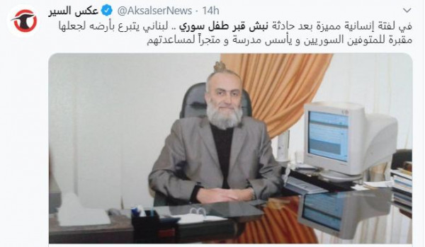ولم ينحصر الغضب في لبنان على غير المواطنين، حيث ذكرت صحيفة "عكس السير" المحلية أن أكاديمياً لبنانياً أعلن تبرعه بأرضه لجعلها مقبرة للمتوفين السوريين و يأسس مدرسة و متجراً لمساعدتهم، في لفتة إنسانية مؤثرة.
