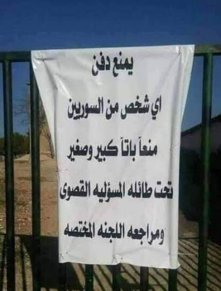 فقد تناقل نشطاء عبر مواقع التواصل الاجتماعي خبراً مفاده أن مواطنين في قرية عاصون شمال البلاد، نبشوا قبر طفل سوري يبلغ من العمر 4 سنوات بعد ساعات قليلة من دفنه، بذريعة أن المقبرة مخصصة للبنانيين فقط.