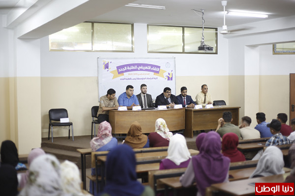 من جانبه، أشار د. نهاد بدرية عميد شؤون الطلبة إلى ضرورة التزام الطلبة بقوانين الجامعة وأنظمتها التي تسهل على الطلبة الوصول إلى مرادهم، مؤكدًا حرص الجامعة على الرقي بطلبتها في كل الجوانب العلمية والعملية، كما أكد أن نظام العمل التطوعي سيفعل ليعزز قيمة الانتماء لدى الطالب لجامعته ووطنه فلسطين.