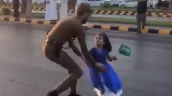 مشهد مؤثر لرجل أمن سعودي.. بدأ بإبعاد حمامة وانتهى بإنقاذ طفلة
