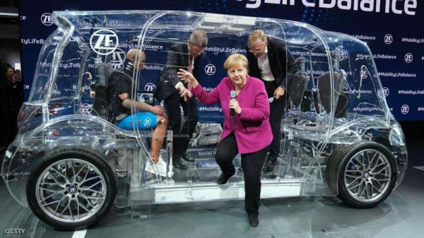 المستشارة الألمانية تواجدت في المعرض واستعرضت نموذجا لسيارة شفافة ذاتية القيادة.