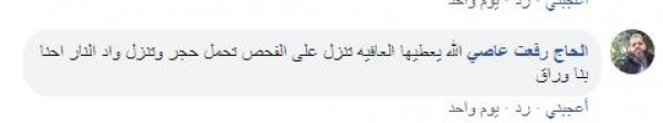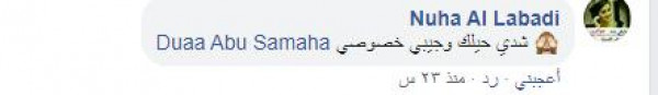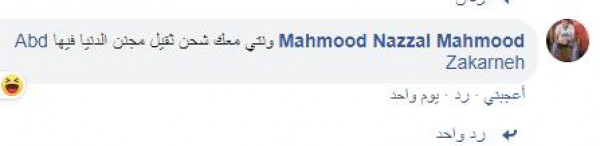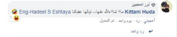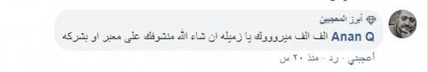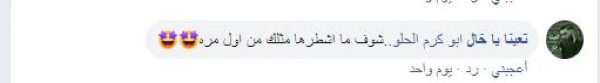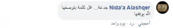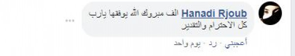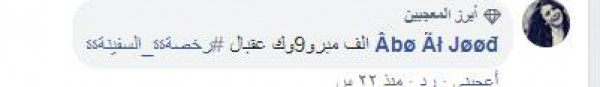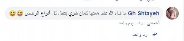 حيث علق عبود الديك :"أي تريله نازلة من فوق خذ اقصى اليمين وبلش في الفاتحة ، مهنئاً اياها قائلاً أجمل باقات الورود الف الف مبروك يكفيك شرها ويعطيك خيرها يا رب".