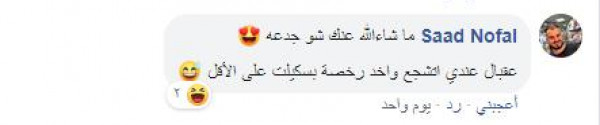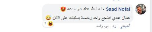 بينما تمنى سعد نوفل أن يأخذ الرخصة مثلها، قائلاً :" ما شاء الله عنك شو جدعة، عقبال عندي أتشجع وأخد رخصة بسكيلت على الأقل".