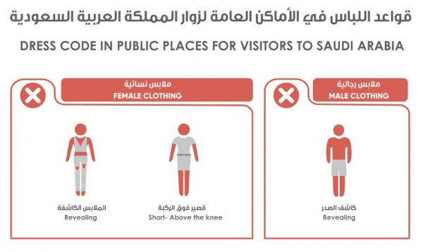 شاهد:صورة تشرح قواعد اللبس المخالف للرجال والنساء في الأماكن العامة لزوار المملكة
