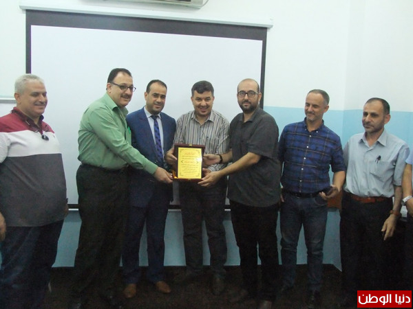 افتتح قسم العلاج الطبيعي بمجمع الشفاء، قاعة د. " أزهار السمك " التعليمية ، بحضور د. محمد ابو سلمية مدير عام المجمع ود. حسن اللوح المدير الطبي ود. احمد النجار رئيس قسم العلاج الطبيعي بالمجمع وبحضور مدراء الأقسام والدوائر وأخصائيى العلاج الطبيعي.